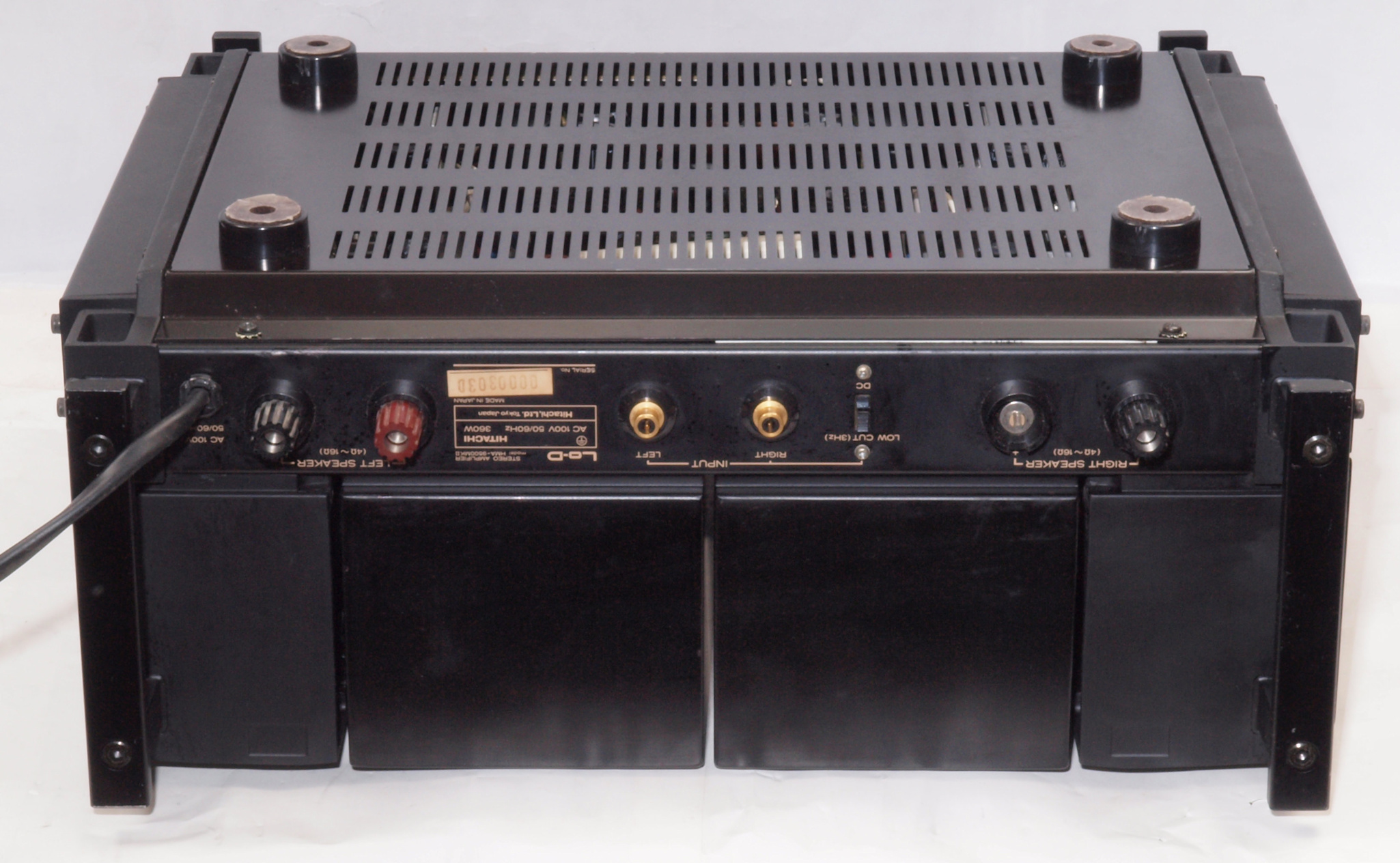 F. 修理費 ,000円 オーバーホール修理。 但し、最終測定時に結果が悪くて、終段FET(電界効果トランジスター)交換費用は別途。 Y. ユーザー宅の設置状況 S. HITACHI Lo−D HMA−9500mkU の仕様(マニアルより) |